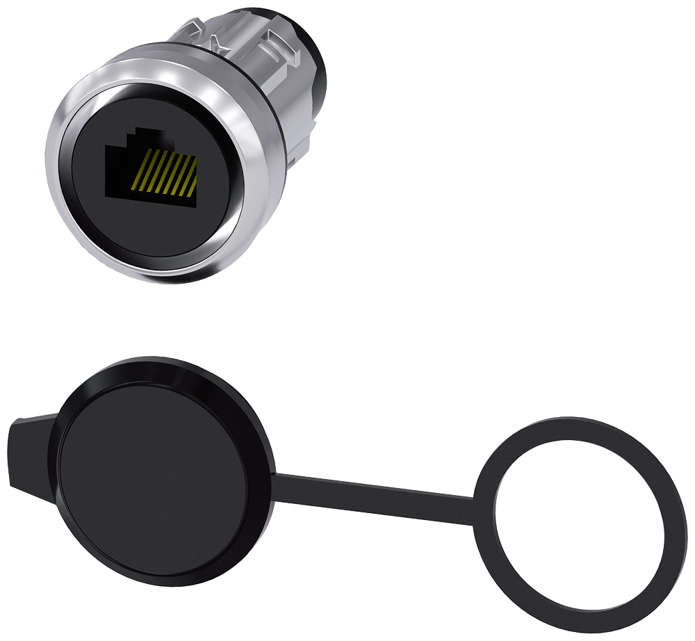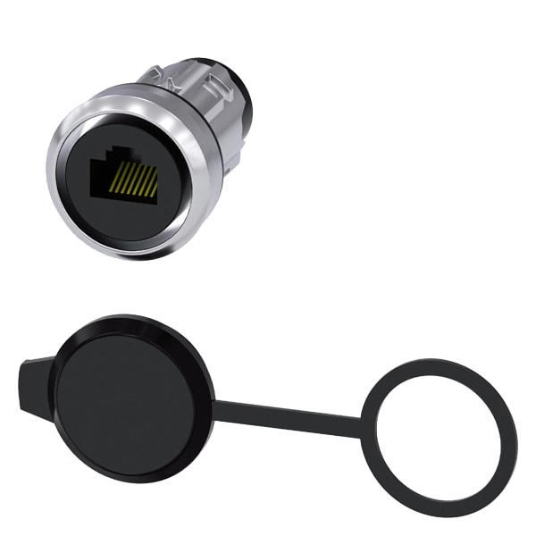 Collegamento RJ45, 22 mm, metallo lucido, argento Connessione RJ45 come accessori per dispositivi di comando e segnalazione SIRIUS ACT. Siemens offre, sotto il nome commerciale SIRIUS ACT, un portfolio esclusivo di dispositivi di comando e segnalazione con omologazioni di prodotto per il mercato mondiale in tre moderne serie di design in robusto metallo puro e plastica pregiata.Linnovativo concetto di innesto a scatto semplifica talmente il montaggio che per eseguirlo basta una sola mano e non servono attrezzi speciali. Per i fori di montaggio sono sufficienti semplici fori non scanalati, essendo già integrata una protezione antirotazione al 100 %.Grazie al grado di protezione elevato i robusti apparecchi sono adatti allimpiego industriale e in ambiente esterno. È persino possibile la pulizia con getto ad alta pressione. Né polvere, né oli, né liscivia possono comprometterne il funzionamento affidabile.Oltre che con il cablaggio standard, gli apparecchi possono essere collegati al controllore anche tramite PROFINET, AS-Interface oppure IO-Link. Potete così ridurre il vostro onere di cablaggio, minimizzare le fonti di errore e ottenere maggiore flessibilità.Il configuratore online grafico supporta in modo confortevole la scelta e lordinazione di singoli apparecchi, pulsantiere e iscrizioni. È disponibile una documentazione completa (ad es. manuale, dati 3D, schema di collegamento). Ampia gamma di accessori opzionali (ad es. targhette identificative, per protezione e accesso, operatori, accessori per pulsantiere). SIRIUS ACT - Performance in Action nel comando e nella segnalazione. Semplici da montare, altamente performanti, semplicemente perfetti.