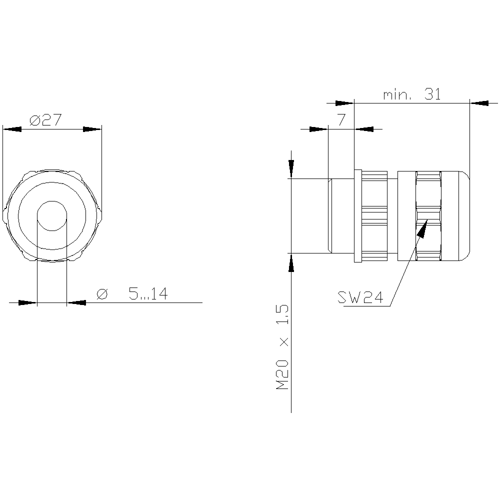 SIEMENS - SIE3SX56011A CABLE GLAND M20X1.5, IP69K - 3SX56011A