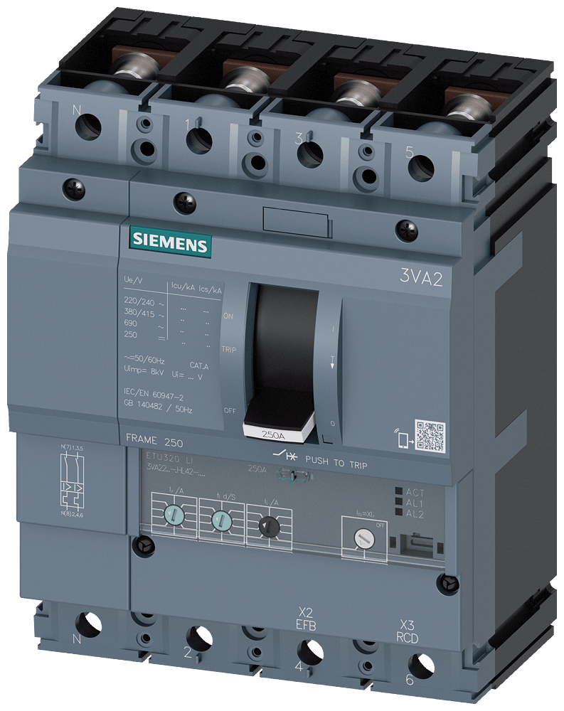 SIEMENS - SIE3VA22256HL420AA0 INT.AUT.3VA 250A 4P 85KA ETU3 LI L/T - 3VA22256HL420AA0