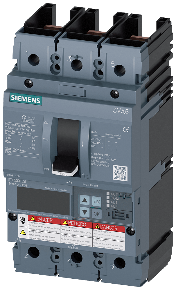 SIEMENS - SIE3VA61105JP310AA0 MCCB UL BG150 100A 3P 35KA ETU5 LSI - 3VA61105JP310AA0