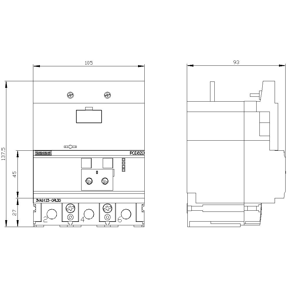 SIEMENS - SIE3VA91230RL30 RCD820 X 3VA20/1 3P I=160A U=127-690V - 3VA91230RL30