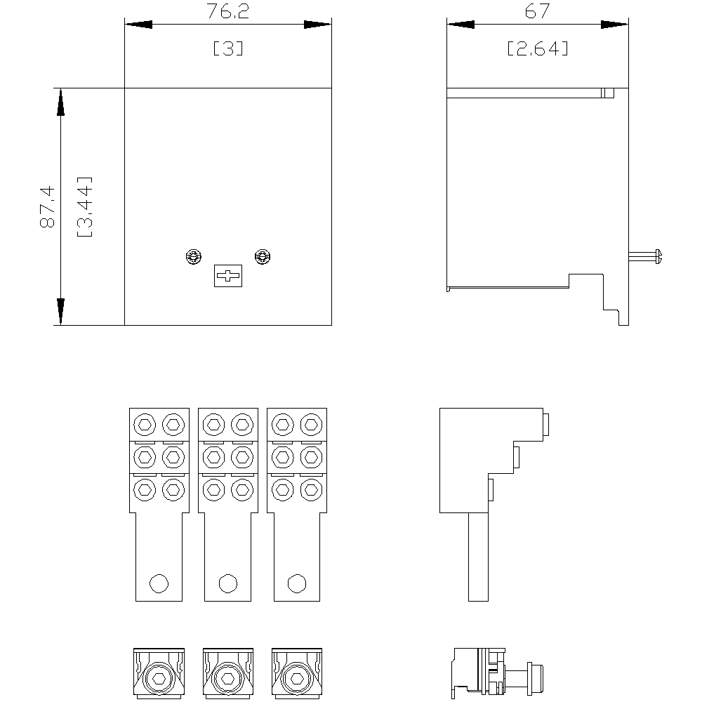 morsetto di collegamento per conduttore circolare TA2.5 6 x 14 AWG … 2 AWG per 6 cavi 3 pezzi accessori per: 3VA51 Interruttori automatici scatolati SENTRON 3VA - un sistema. Per tutte le applicazioni.