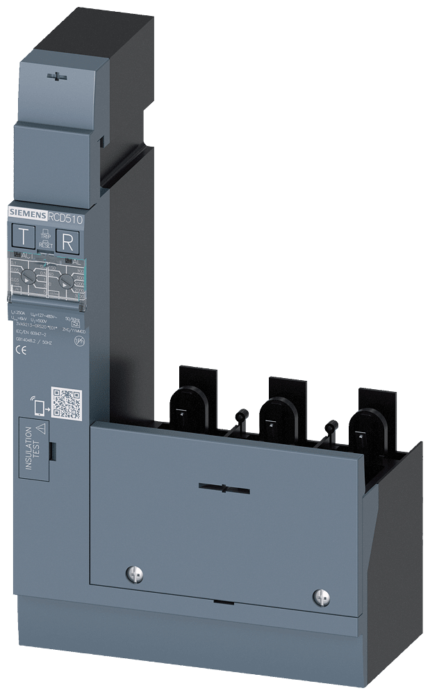 dispositivo di protezione differenziale RCD510 Basic RCD Tipo A montato lateralmente corrente di guasto nominale 0,03 ... 5 A a 50/60 Hz tempo regolabile 0 ... 3000 ms a 3 poli In=250A Ue=127-480 V Accessori per: 3VA1 con collegamento con morsetti Interruttori automatici scatolati SENTRON 3VA - un sistema. Per tutte le applicazioni.
