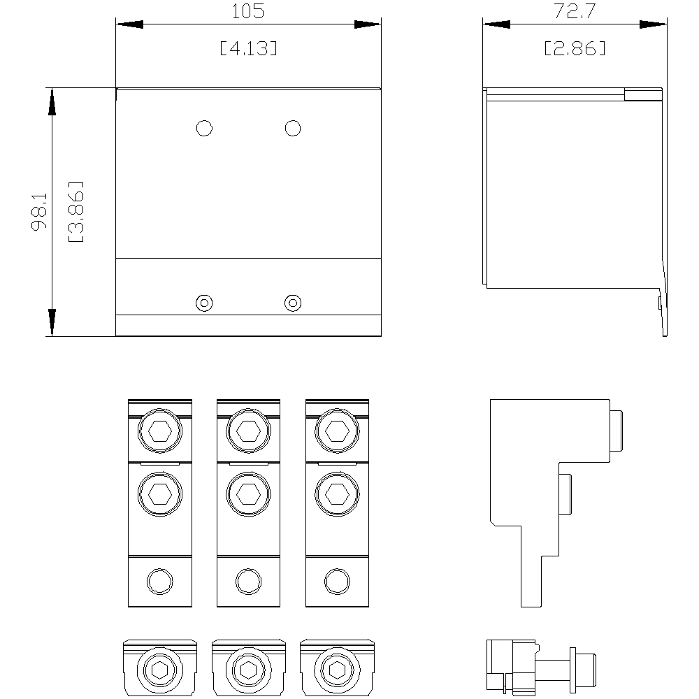 morsetto di collegamento per conduttore circolare TA2.3 2 x 4 AWG ... 300 kcmil per 2 cavi 3 pezzi accessori per: 3VA52 Interruttori automatici scatolati SENTRON 3VA - un sistema. Per tutte le applicazioni.