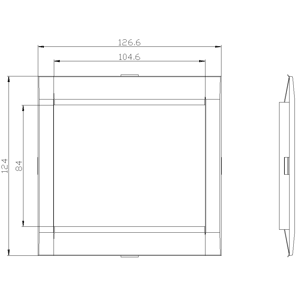 mostrina frontale copriforo 104,6x 84,7mm (LaxA) accessori per: interruttori automatici a 3 poli con accesso a TMTU 3VA12; 3VA20/21/22 per cornice passante porta 3VA9257-0KT00, 3VA9167-0KT00 Interruttori automatici scatolati SENTRON 3VA - un sistema. Pertutte le applicazioni.