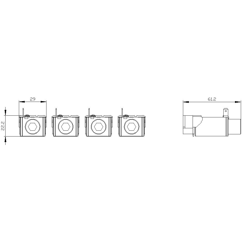 morsetto di collegamento per conduttore circolare TA1.2 35…185 mm² con presa di tensione per conduttore ausiliario 4 pezzi accessori per: 3VA12 Interruttori automatici scatolati SENTRON 3VA - un sistema. Per tutte le applicazioni.