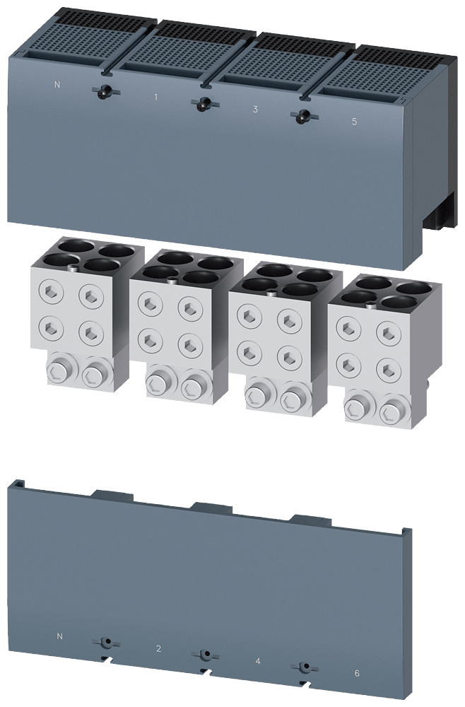 morsetto di collegamento per conduttore circolare TA4.4 4 x 120…300 mm² con presa di tensione per conduttore ausiliario per 4 cavi; 4 pz. accessori per: 3VA15; 3VA25 Interruttori automatici scatolati SENTRON 3VA - un sistema. Per tutte le applicazioni.