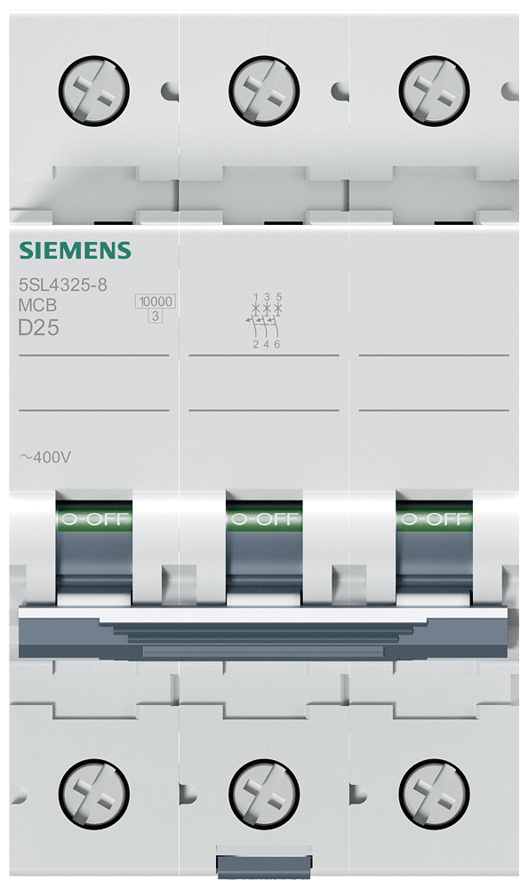 Interruttore magnetotermico 400V 10 kA, a 3 poli, D, 25A Interruttore magnetotermico SENTRON per la protezione da cortocircuito e sovraccarico sicura per applicazioni standard in edifici residenziali e funzionali. Montaggio e smontaggio dellapparecchio senza attrezzi. Semplice cablaggio dellalimentazione mediante la sbarra collettrice posteriore. Gli interruttori magnetotermici 5SL sono disponibili in esecuzione a 1, 2, 3, 4 poli nonché a 1 polo +N e a 3 poli +N nonché in ulteriori tipi speciali. I numerosi accessori, come ad es. i blocchetti di contatti ausiliari, consentono una varietà di ampliamenti funzionali. Semplicemente sicuri con gli apparecchi di protezione di SENTRON.