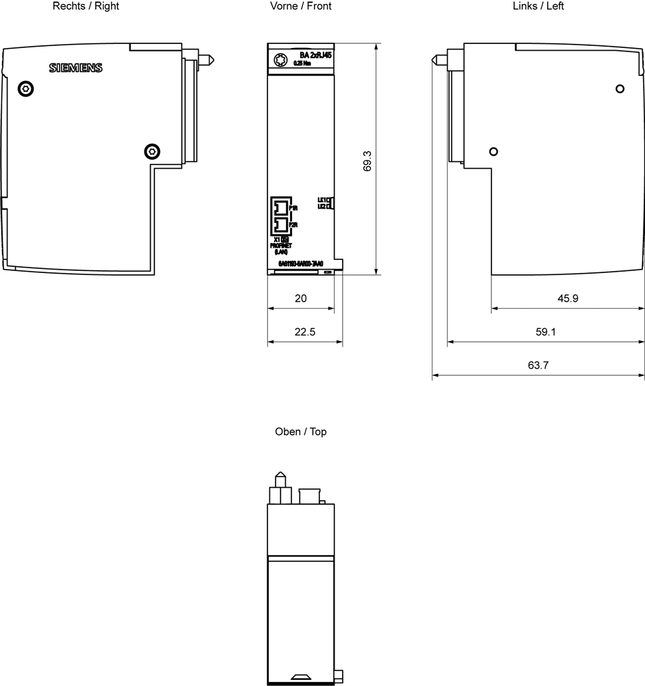 SIEMENS - SIE6AG11936AR007AA0 SIPLUS ET 200SP BA 2XRJ45 - 6AG11936AR007AA0