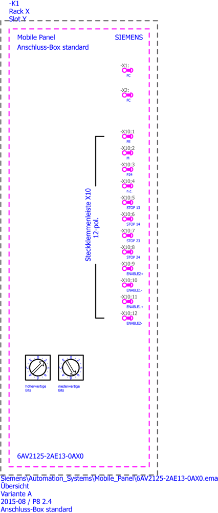 Box di collegamento SIMATIC HMI Standard per Mobile Panel, Fissaggio a parete, PROFINET ePROFISAFE, Collegamento relè di sicurezza, Identificazione del punto di connessione, switch integrato Connessioni dei Mobile Panel.