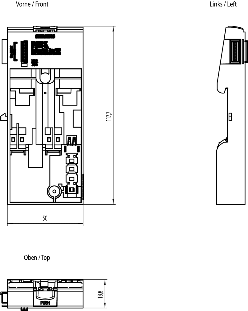 SIMATIC ET 200SP HA, ET 200SP, BaseUnit tipo W0, per Power Module Ex-PM E, LaxA: 50 mm x 117 mm