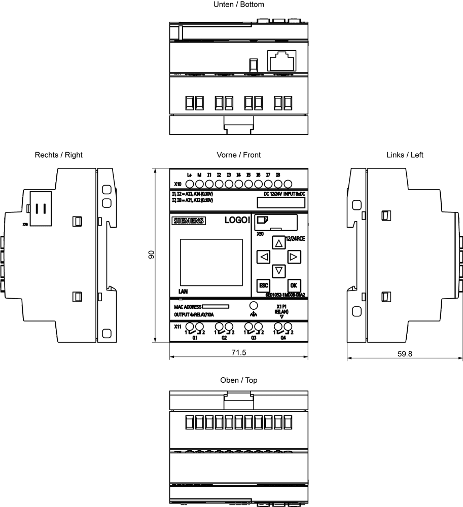 SIEMENS - SIE6ED10521MD080BA2 LOGO!12/24RCE, 8DI(4AI)/4DO, 400 BLOCKS - 6ED10521MD080BA2