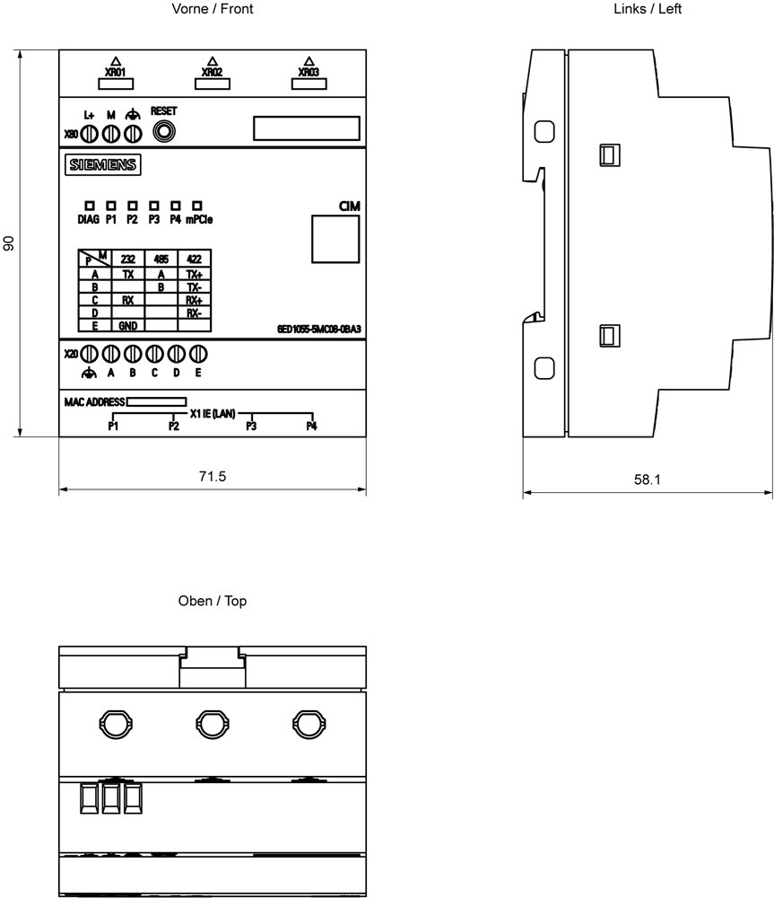 CIM Communication modulo di interfaccia per LOGO! 8 ModbusRTU Interface (RS232/485) switch a 4 porte; senza 4G/LTE/GPS Engine; senza antenne; configuratore Web