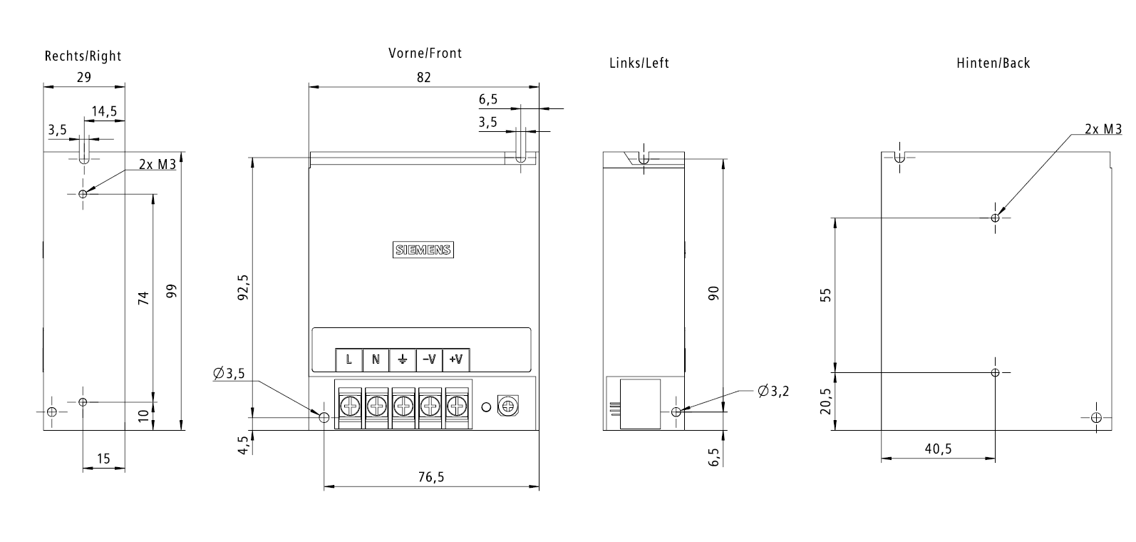PSU100D 24 V/2,2 A alimentatore stabilizzato ingresso: AC 100...240 V uscita: DC 24 V/2,2A I PSU100D monofase sono alimentatori economici per i requisiti di base. Sono ideali per linstallazione in spazi ridotti o per il montaggio in quadri elettrici e involucri senza guida DIN. Tipici campo dimpiego sono ad es. apparecchiature, distributori automatici e soluzioni di automazione. La custodia in alluminio piatta e robusta, con grado di protezione IP20, può essere avvitata direttamente alla parete e montatain diverse posizioni di installazione, anche per applicazioni con alte temperature che richiedono unelevata resistenza a urti e vibrazioni. Lingresso wide-range consente il collegamento ai tipi di rete più diversi e assicura unalimentazione affidabile a 24 V persino in presenza di forti fluttuazioni di tensione. Indipendentemente dal settore o dallesigenza, Siemens offre alimentatori affidabili ed efficienti per ogni impianto.