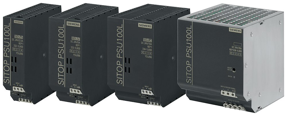SITOP PSU100L 24 V/2,5 A Alimentatore stabilizzato ingresso: AC 120/230 V uscita: DC 24 V/2,5 A Gli alimentatori monofase SITOP lite sono concepiti per le esigenze base nel campo industriale ed offrono tutte le funzioni più importanti ad un prezzo vantaggioso. Lingresso wide-range con commutazione manuale consente il collegamento alle più diverse reti di alimentazione monofase. Grazie alla larghezza costruttiva ridotta, gli alimentatori da rete richiedono poco spazio sulla guida DIN e lottimo rendimento riduce lo sviluppo di calore dissipato nel quadro elettrico. Per un ulteriore aumento della disponibilità di 24 V, gli alimentatori da rete SITOP lite possono essere combinati con moduli buffer, DC-UPS, di ridondanza e selettivi. Indipendentemente dal settore o dallesigenza, Siemens offre alimentatori affidabili ed efficienti per ogni impianto.