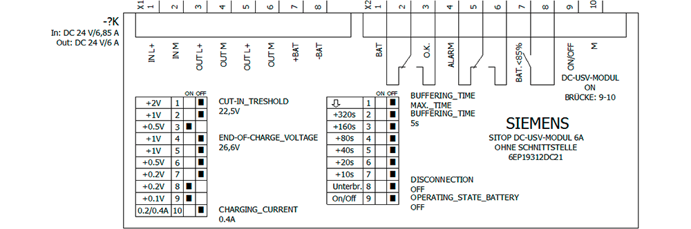 modulo SITOP DC-UPS 24V/6A alimentatore di continuità senza interfaccia ingresso: DC 24 V/6,85 A uscita: DC 24 V/6 A Gli alimentatori di continuità con moduli batteria sono il complemento ideale per tutti gli alimentatori a 24 V. Superano le cadute di rete prolungate anche nellordine delle ore, garantendo un funzionamento senza interruzione dellimpianto. Anche quando serve una corrente di tamponamento elevata, il DC-UPS con batterie al piombo esenti da manutenzione garantisce una sicurezza ottimale.
