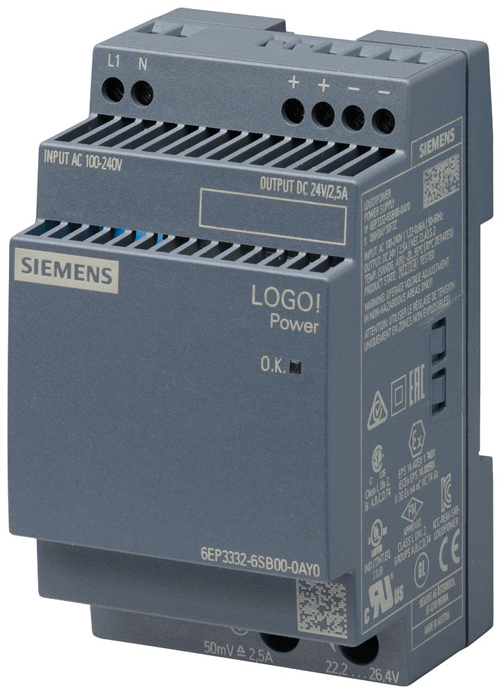 SIEMENS - SIE6EP33326SB000AY0 LOGO!POWER 1AC DC24V 2.5A - 6EP33326SB000AY0