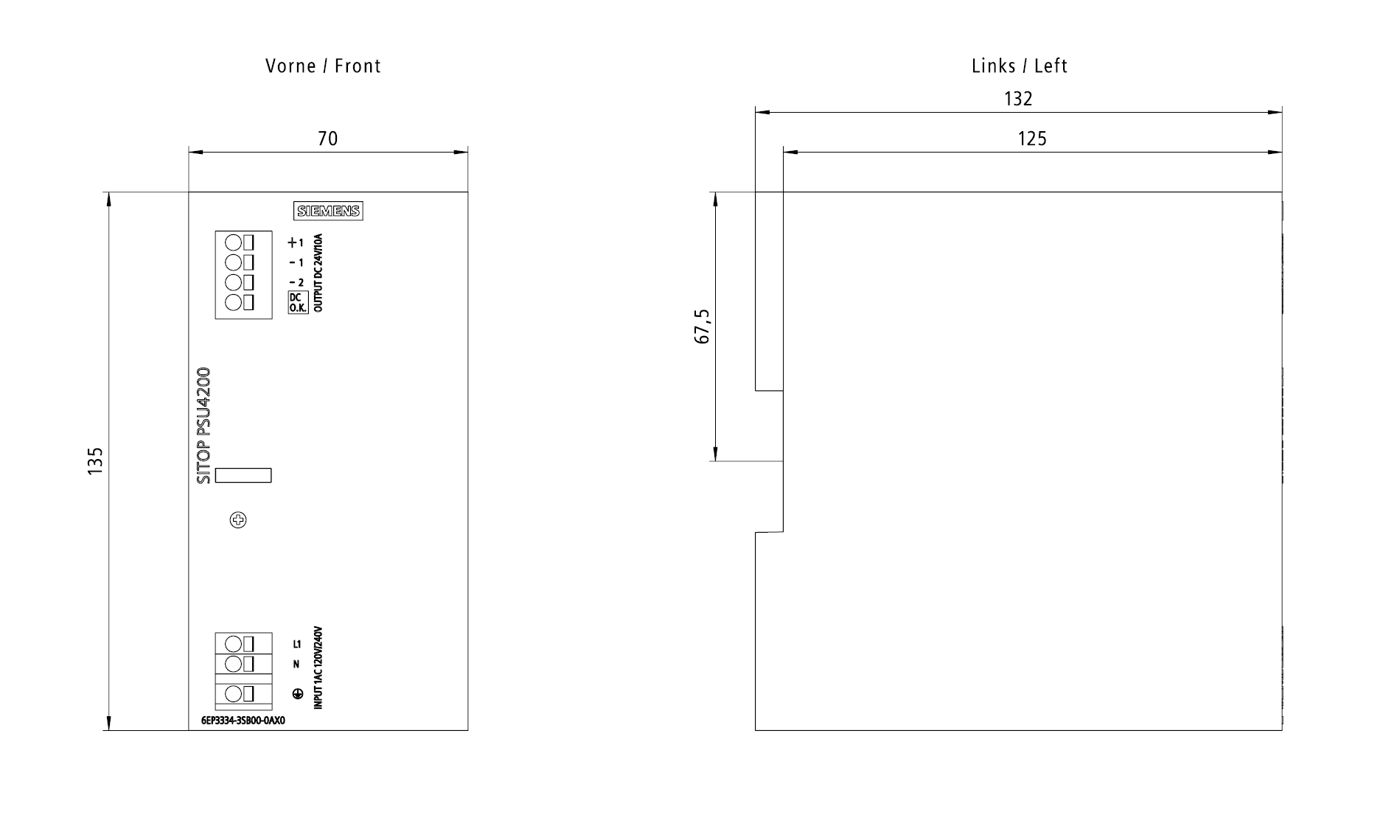 SITOP PSU4200 1AC 24 V/10 A alimentatore stabilizzato PSU4200 ingresso: AC 120/240 V uscita: DC 24 V/10 A Gli alimentatori monofase SITOP PSU4200 sono concepiti per le esigenze base nel campo industriale ed offrono tutte le funzioni più importanti ad un prezzo vantaggioso. Lingresso con commutazione automatica del campo di tensione consente il collegamento alle più diverse reti di alimentazione monofase. Grazie alla larghezza costruttiva ridotta, gli alimentatori da rete richiedono poco spazio sulla guida DIN e lottimo rendimento riduce lo sviluppo di calore dissipato nel quadro elettrico. Per un ulteriore aumento della disponibilità di 24 V, gli alimentatori da rete SITOP PSU4200 possono essere combinati con moduli buffer, di ridondanza e selettivi. Indipendentemente dal settore o dallesigenza, Siemens offre alimentatori affidabili ed efficienti per ogni impianto.