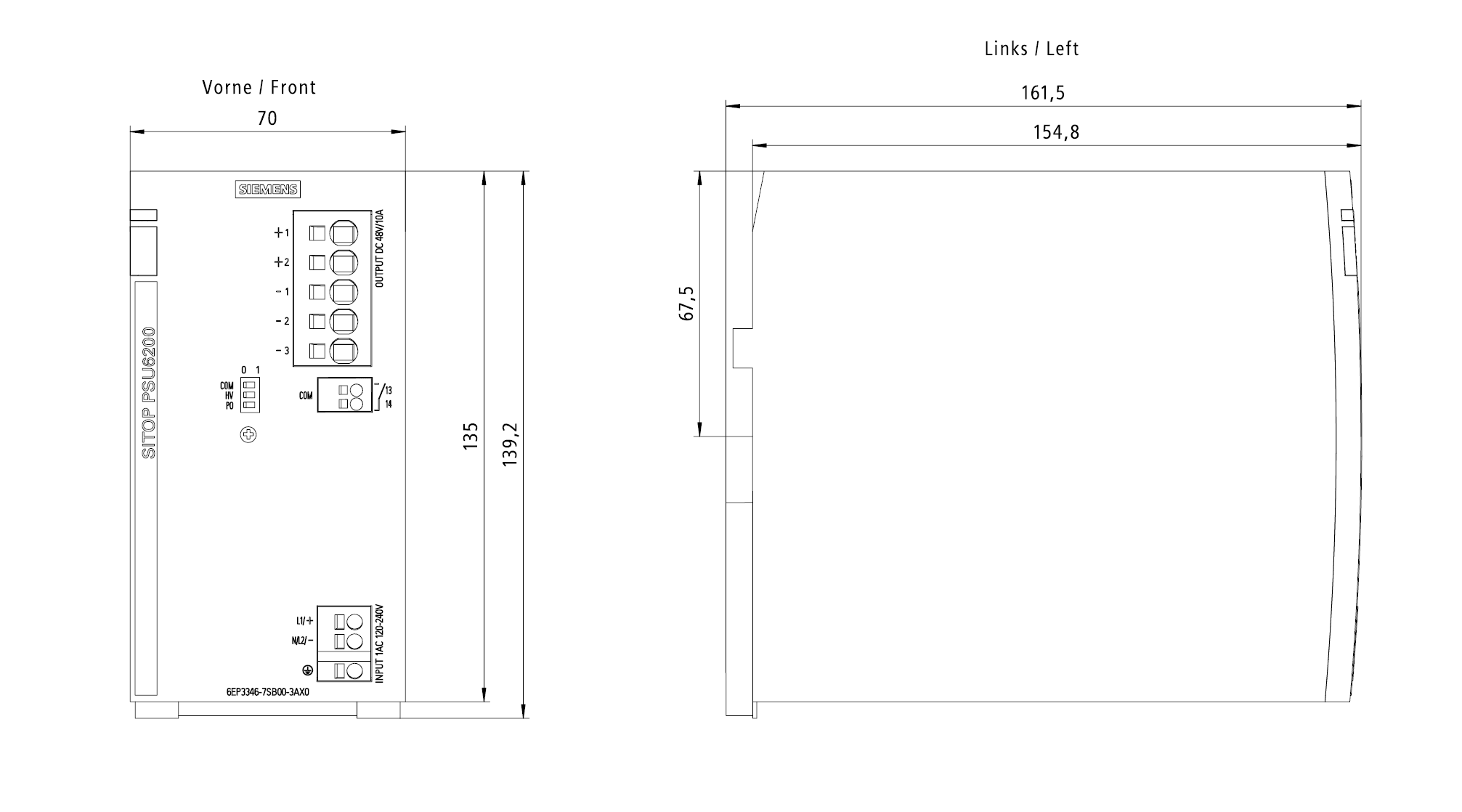 SIEMENS - SIE6EP33467SB003AX0 SITOP PSU6200/1AC/DC48V/10A - 6EP33467SB003AX0