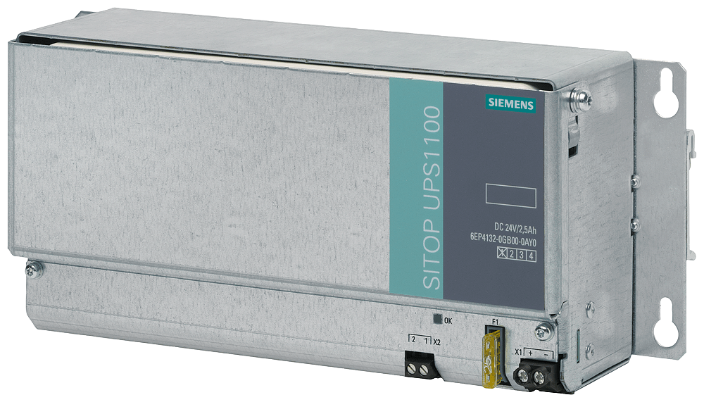 SITOP UPS1100 modulo batteria con batterie al piombo sigillate batteria al piombo puro per moduli SITOP DC-UPS DC 24 V 2,5 Ah I moduli batteria esenti da manutenzione SITOP UPS1100 con batterie al piombo puro, più insensibili alle temperature, sono un importante componente dei sistemi DC-USV. In combinazione con un alimentatore a 24 V e un modulo UPS1600 consentono di bufferizzare cadute di rete anche dellordine di ore. La gestione intelligente delle batterie dellUPS1600 ricarica lUPS1100 con la caratteristica di carica ottimale a temperatura controllata e sorveglia lo stato via Energy Storage Link (dati di funzionamento e informazioni di diagnostica) dei moduli batteria collegati. Per ottenere tempi di bufferizzazione più lunghi è possibile collegare fino a sei moduli batteria paralleli. Il fissaggio si esegue su guida profilata standard o con il montaggio direttamente a parete.