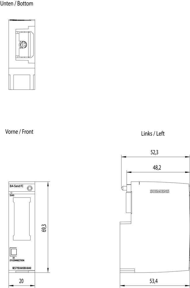 SIEMENS - SIE6ES71936AS000AA0 ET 200SP, BUSADAPTER BA-SEND BA1XFC - 6ES71936AS000AA0