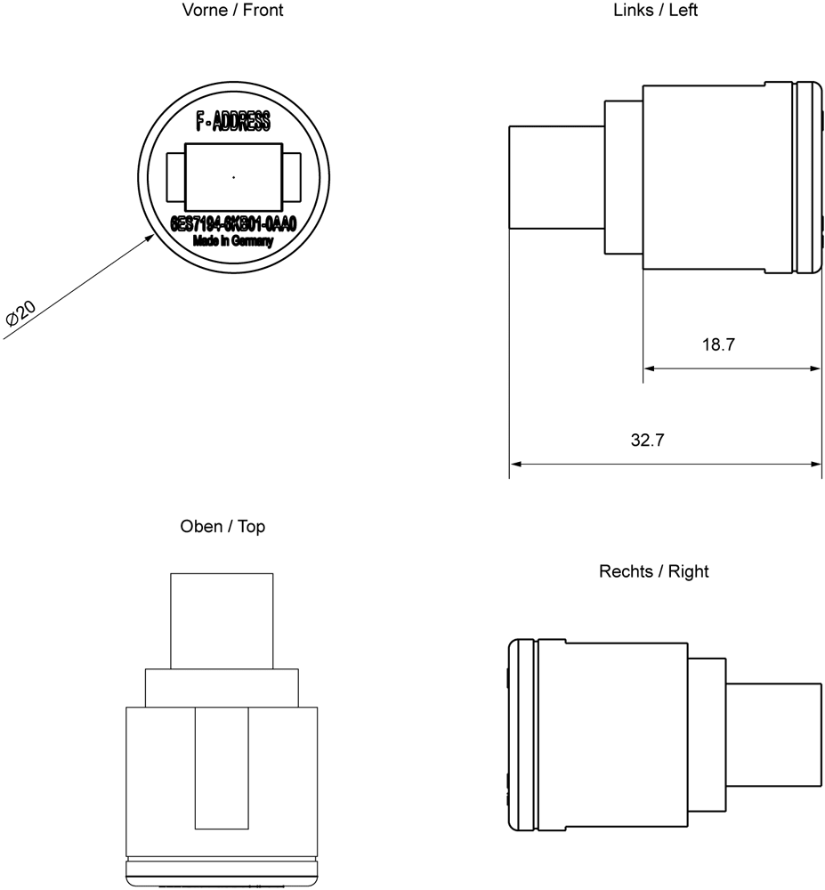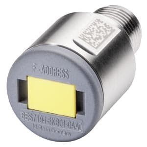 SIMATIC DP, pezzo di ricambio, connettore di codifica-E (metallo) per periferie fail-safe decentrate ET 200, IP 65/67, a 5 poli, M12 1 pezzo per unità di imballaggio Connettore di codifica per la memorizzazione degli indirizzi fail-safe. Esso consente unassegnazione automatica e centralizzata degli indirizzi F dal tool di progettazione. In caso di sostituzione del modulo devessere solo innestato il connettore sul nuovo modulo.