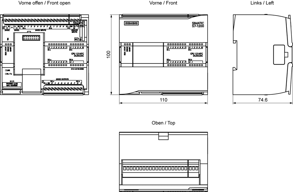 SIEMENS - SIE6ES72141AF400XB0 CPU 1214 FC, DC/DC/DC, 14DI/10DO/2AI - 6ES72141AF400XB0