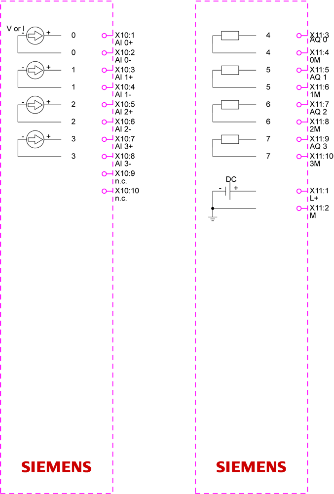SIMATIC S7-1200 G2: I/O analogici SM 1233, 4AI/4AO; ingressi: 4 x AI ADC 14 bit (+/-10V, +/-5V, +/-2,5V oppure 0-20 mA/4-20 mA); uscite: 4 x AQ DAC 14 bit (+/-10V, 0-20mA oppure 4-20mA) SIMATIC S7-1200 Basic Controller - flessibile grazie a molteplici possibilità di comunicazione. Con le unità di ingressi/uscite è possibile personalizzare la configurazione del SIMATIC S7-1200 G2 in base alle proprie esigenze. A tale scopo è disponibile una serie di unità di ingressi e uscite digitali e analogici e di unità miste, anche nelle varianti fail-safe. Queste opzioni costruttive finemente granulari consentono di risparmiare spazio nel quadro elettrico e di ottimizzare i costi relativi allhardware.