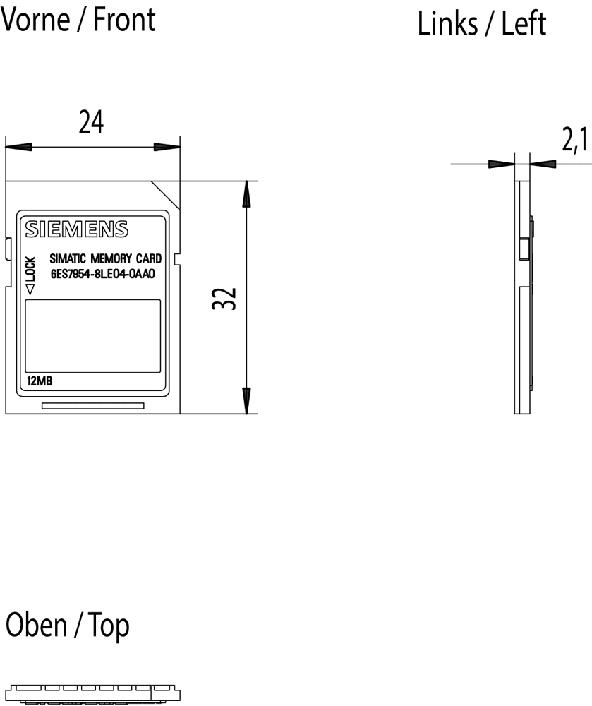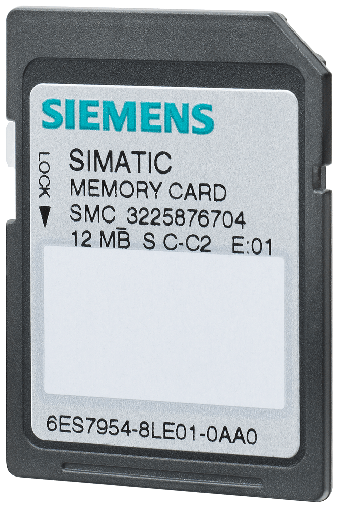 SIMATIC S7, Memory Card per S7-1x00 CPU/SINAMICS, 3, 3V Flash, 12 Mbyte SIMATIC S7-1200 Basic Controller - flessibile grazie a molteplici possibilità di comunicazione e SIMATIC S7-1500 Advanced Controller - il più veloce controllore Siemens per lautomazione. Per la famiglia SIMATIC S7-1200/S7-1500 sono offerte SIMATIC Memory Card come accessori opzionali o necessari in diverse grandezze.