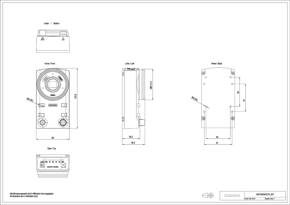 SIEMENS - SIE6GF35400CD10 OPTICAL READER MV540 S - 6GF35400CD10