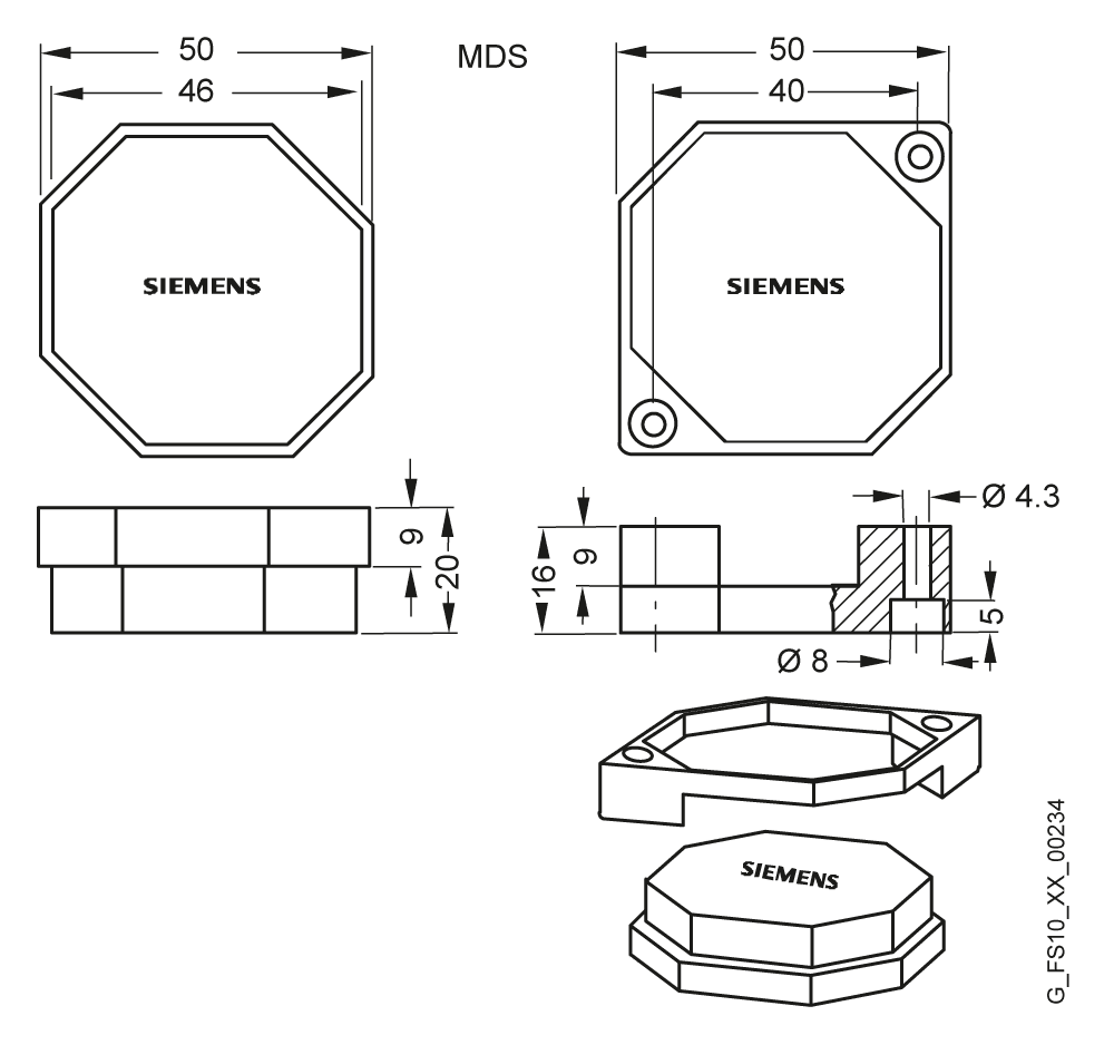 transponder SIMATIC RF300 RF350T 32 kbyte FRAM, IP68, -25 ... +85°C, 50x 50x 20 mm incl. cornice di fissaggio SIMATIC RFSistemi di identificazioneTransponder RF350TTransponder RF350T, RF300, 32 kbyte FRAM, IP68
