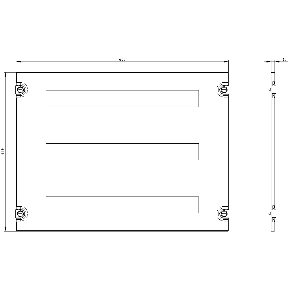 ALPHA 630 Universal, copertura di scomparto con aperture 3x 24UM, interdistanza tra le file 150 mm A=450mm La=600mm Quadri di distribuzione ALPHA - un sistema completo di quadri centralino e quadri di distribuzione a pavimento per linstallazione di apparecchi fino a 1250 A. I sistemi di quadri di distribuzione ALPHA sono testati secondo IEC 61439. Grazie alla struttura modulare e ad una piattaforma comune è possibile integrare i kit di montaggio specifici degli apparecchi in diverse varianti di quadri didistribuzione. Ciò facilita la pianificazione e il montaggio. Lequipaggiamento avviene in modo individuale e specifico per il progetto. Il software di configurazione SIMARIS configuration supporta lutente dalla pianificazione fino alla documentazione deiquadri di distribuzione dellenergia e dei quadri di distribuzione per linstallazione. I sistemi di quadri di distribuzione ALPHA sono fornibili in numerose esecuzioni e in molti colori speciali. Le porte sono a scelta in vetro o in acciaio. ALPHA - il concetto di sistema è importante.