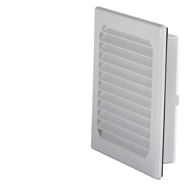 filtro di uscita, Apertura: B: 125 mm, H: 125 mm, RAL 7035, IP55 Climatizzazione di sistema SIVACON 8MF / 8MR - per linterno del quadro. Realizzazione della climatizzazione di sistema a fronte di esigenze specifiche. SIVACON 8MR assicura il funzionamentosenza disturbi degli apparecchi da incasso elettrici ed elettronici installati nel quadro anche in condizioni ambientali gravose. Esso impedisce inoltre la formazione di condensa o danneggiamenti dovuti al gelo, proteggendo quindi dai guasti funzionali conseguenti. Il portfolio va dai ventilatori con filtro attraverso i condizionatori e i riscaldatori fino ai termostati. In alternativa si possono impiegare in locali tecnici quadri aerati per i quali la climatizzazione è assicurata dalla convezione naturale.