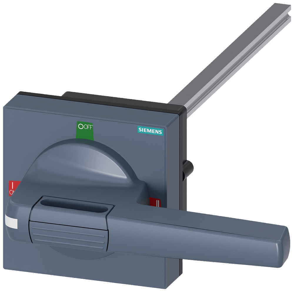 comando rotativo bloccoporta standard con compensazione della tolleranza dimensioni 100 x 100, albero 10 x 10, 300mm, I-0-II, apparecchio completo operatore grandezza 140mm accessori per 3KC0 grand. costr. 4 Comandi manuali per un comodo utilizzo dellinterruttore automatico scatolato 3VA. Disponibilità come comando rotativo frontale, per porta e parete laterale con diverse possibilità di chiusura a chiave e con interblocco Le manopole sono disponibili nelle varianti standard e ARRESTO DI EMERGENZA, ciascuna con o senza kit di illuminazione. Interruttori automatici scatolati SENTRON 3VA - Un sistema. Per tutte le applicazioni.