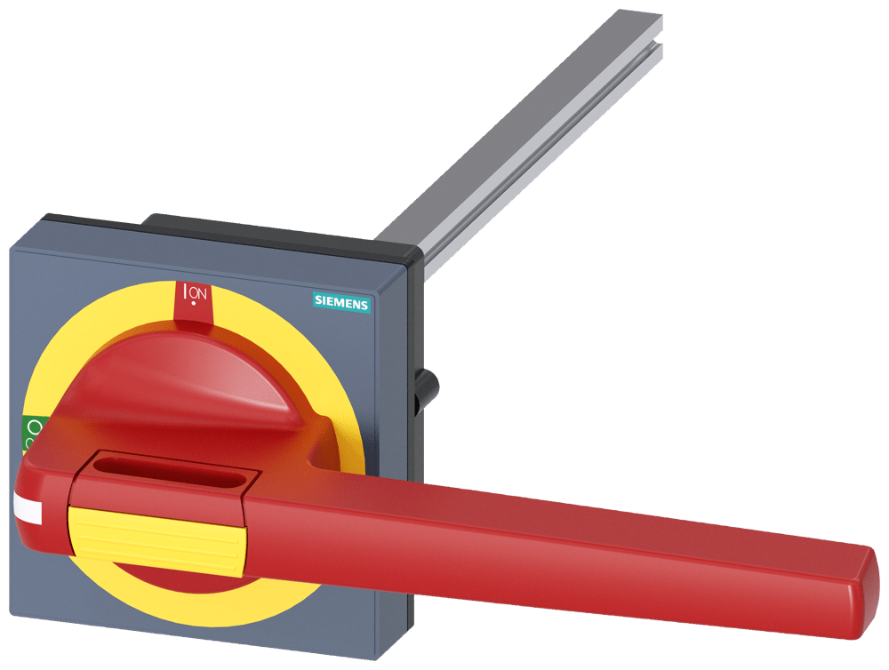 comando rotativo bloccoporta emergenza con compensazione della tolleranza dimensioni 100 x 100, albero 12 x 12, 300mm, 0-I, apparecchio completo operatore grandezza 200mm accessori per 3KD grand. costr. 5, 3KF grand. costr. 5 Comandi manuali per un comodo utilizzo dellinterruttore automatico scatolato 3VA. Disponibilità come comando rotativo frontale, per porta e parete laterale con diverse possibilità di chiusura a chiave e con interblocco Le manopole sono disponibili nelle varianti standard e ARRESTO DI EMERGENZA, ciascuna con o senza kit di illuminazione. Interruttori automatici scatolati SENTRON 3VA - Un sistema. Per tutte le applicazioni.