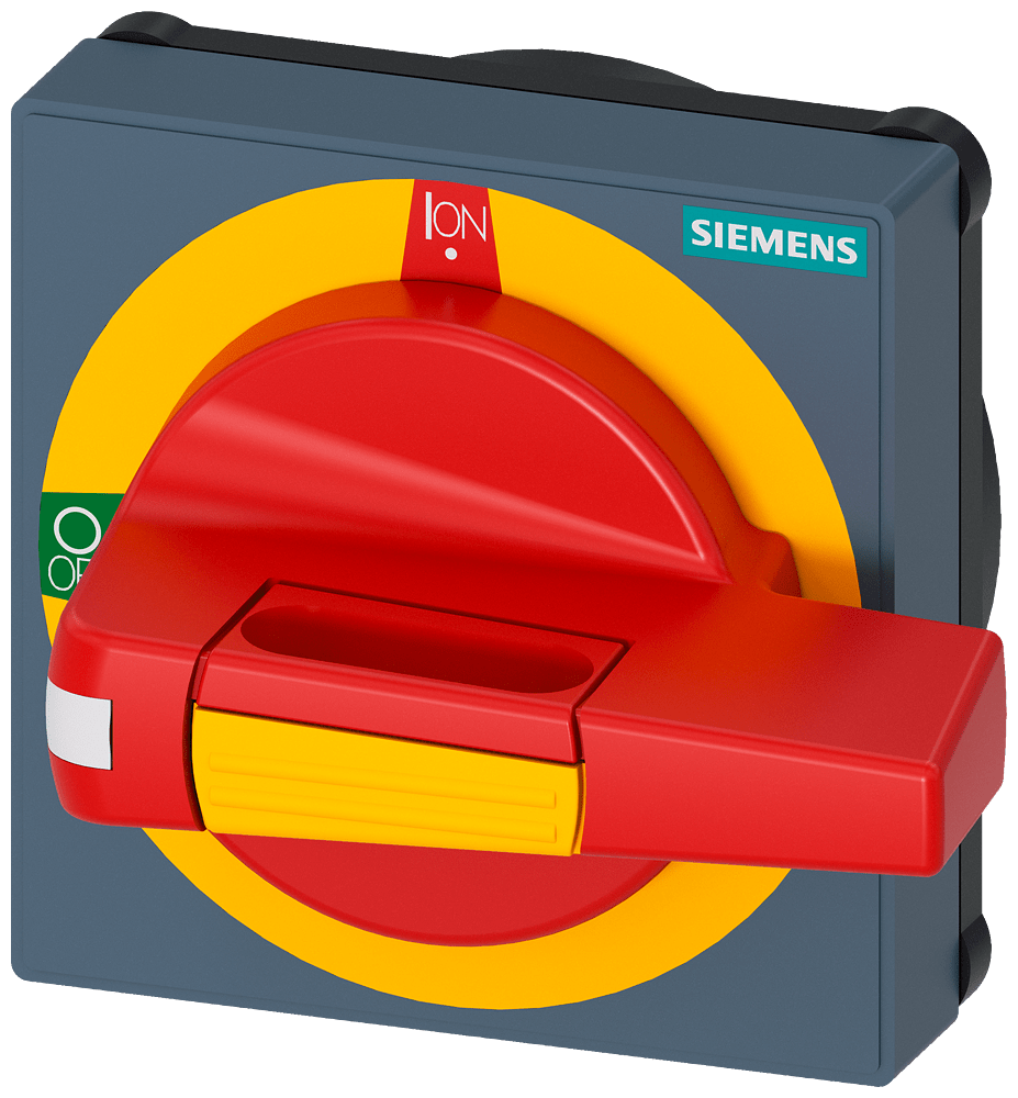 manopola con mostrina frontale emergenza con illuminazione dimensioni 75 x 75, per albero 8x 8, Test-0-I, operatore grandezza 45mm accessori per 3KD grand. costr. 1 e 2, 3KF grand. costr. 1 Comandi manuali per un comodo utilizzo dellinterruttore automatico scatolato 3VA. Disponibilità come comando rotativo frontale, per porta e parete laterale con diverse possibilità di chiusura a chiave e con interblocco Le manopole sono disponibili nelle varianti standard e ARRESTO DI EMERGENZA, ciascuna con o senza kit di illuminazione. Interruttori automatici scatolati SENTRON 3VA - Un sistema. Per tutte le applicazioni.