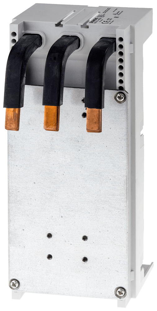 adattatore apparecchio, a 3 poli, 125 A, senza viti di fissaggio per NGG/HGG/LGG/3VA51 interasse sbarre collettrici 60mm 200x 90mm i morsetti devono essere ordinati separatamente per interruttore automatico GG: 3TC1GG20, per 3VA51: 3VA9133-0JA11 o 3VA9133-0JB11 Adattatore apparecchio SENTRON 8US1 per sistemi di sbarre collettrici per il montaggio di dispositivi di protezione. I sistemi di sbarre collettrici 8US Siemens offrono molteplici possibilità per linstallazione di apparecchi di collegamento, manovra e installazione adattabili a sbarre. La struttura modulare, così come il fissaggio meccanico e la contattazione elettrica in una sola operazione sono vantaggiosi. Grazie alla copertura di protezione a prova di dito degli adattatori e dei portapparecchiè garantita unelevata sicurezza di funzionamento. Sono dotati di una omologazione internazionale e consentono possibilità di impiego in tutto il mondo nel settore della costruzione di macchine e impianti. Il sistema di sbarre collettrici 8US1 è disponibile con interassi delle sbarre collettrici diversi. Sistemi di sbarre collettrici SENTRON - sicuri, poco ingombranti, organizzati in modo chiaro.