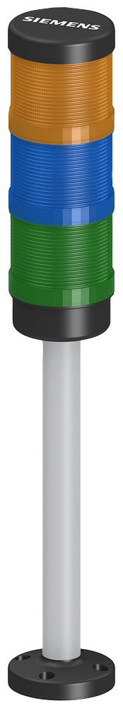 apparecchio completo colonnina di segnalazione, in alto: luce fissa, giallo, al centro: luce fissa, blu, in basso, luce fissa, verde, LED AC/DC 24V integrato, elemento di connessione per montaggio su tubo, tubo, 250 mm, piede, plastica Colonnine di segnalazione SIRIUS 8WD - Modulari e con capacità di comunicazione in un design moderno.