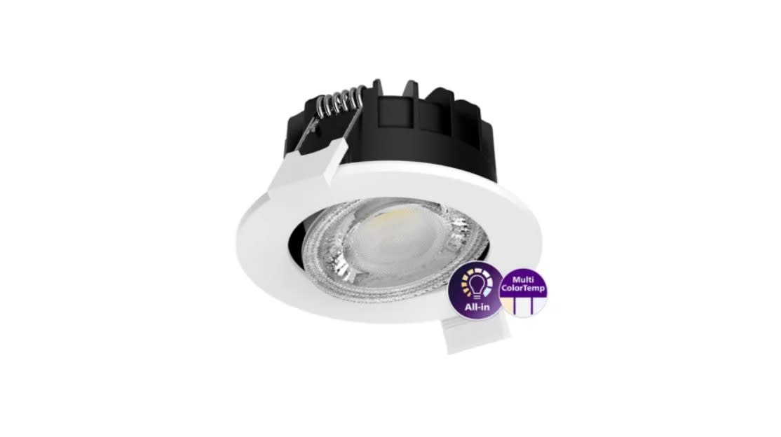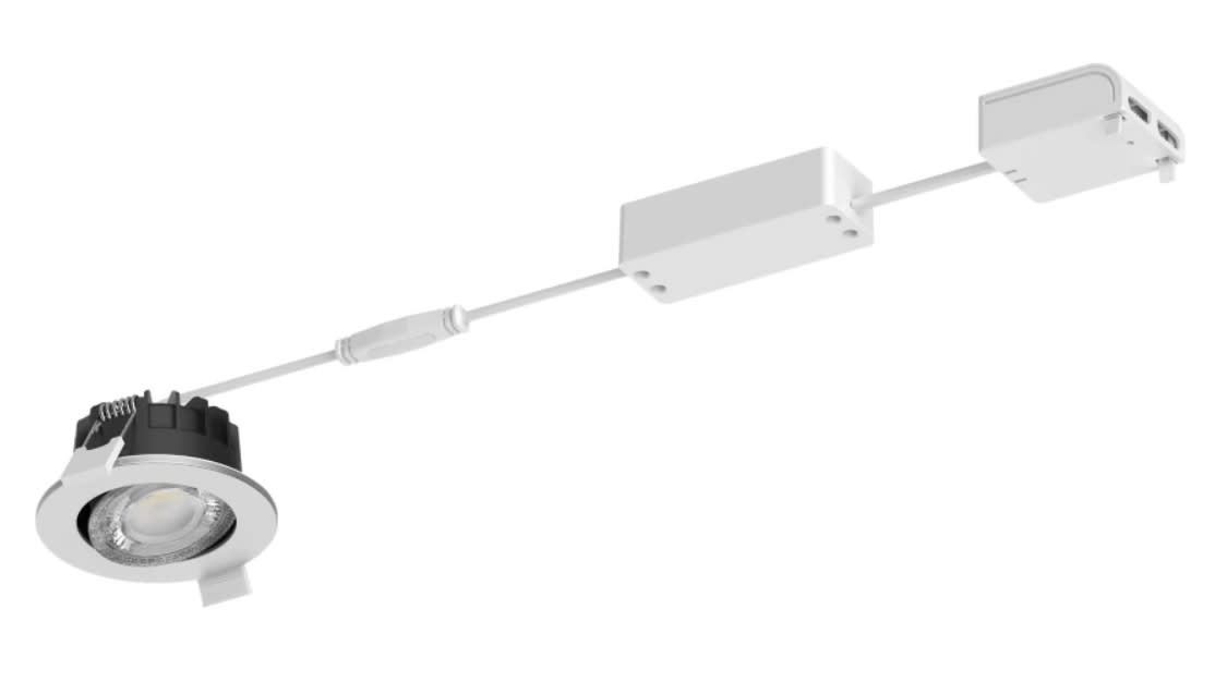 Adjustable, Metal–Plastic, White, Power supply unit (On/Off), All-in, Multi Color Temperature, 550 lm, 6 W, 91 lm/W, 2700 K, 3000 K, 4000 K, (IEC3000K, 0.44, 0.403) 5SDCM, Beam angle 40°, Clear, Polycarbonate, IP20/65 | Finger-protected; Dust penetration-protected, jet-proof, IK03 | 0.35 J reinforced, Safety class II, Push-in connector 3-pole