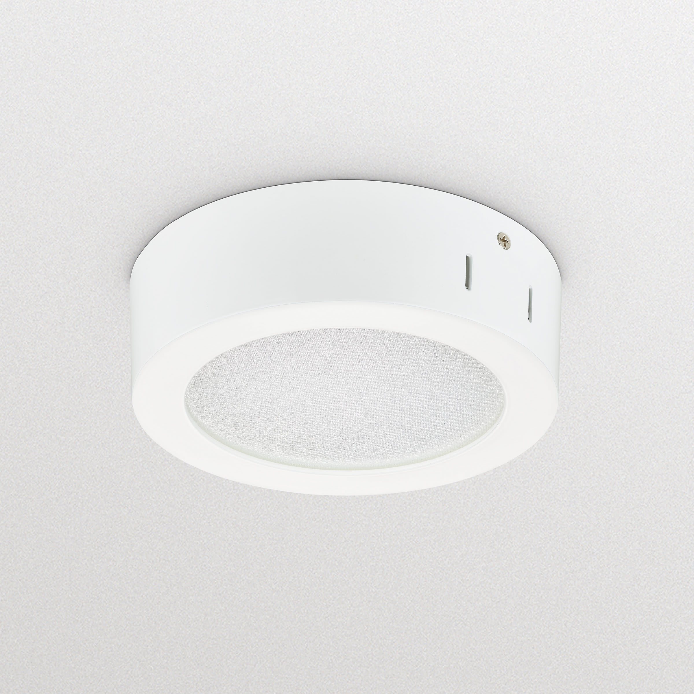 Surface-mounted, D155 mm, Alluminio pressofuso, Bianco, Bianco traffico (RAL9016), Unità di alimentazione (On/Off), 1100 lm, 11 W, 100 lm/W, 3000 K, (0.43657,0.40454) SDCM3, CRI80, Angolo del fascio 90°, Opale, Polistirene, IP20/44 | Protetto contro l'accesso con un dito; protetto contro l'accesso con un filo, a prova di schizzi, IK02 | 0,2 J standard, Classe di isolamento II, Unità di connessione 2 poli