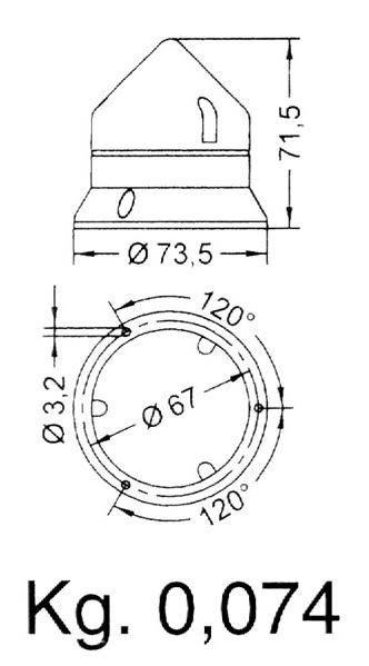 Luce lampeggiane con corpo e base in poliammide, fornito senza lampada. Possibilità di installazione lampada a led.