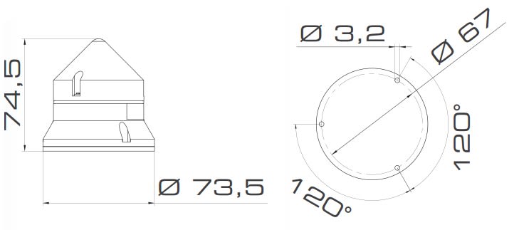 Dispositivo luminoso per applicazioni industriali a bordo macchina con diametro 60mm, versione a luce fissa con lampada a filamento (non fornita). Base in ABS, cupola in policarbonato. Fissaggio tramite viteria standard non fornita. Lampada a incandescenza con attacco Ba15d 5W.