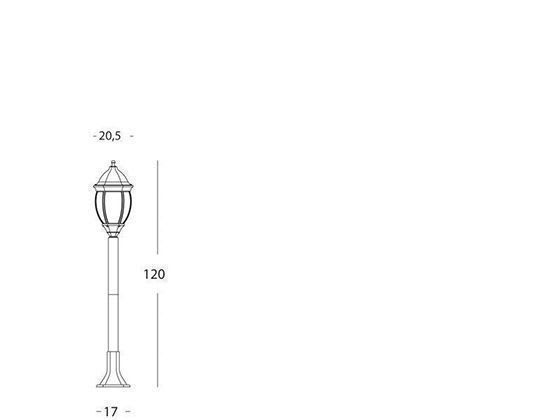 Paletto in pressofusione di alluminio. Diffusori in vetro trasparente molato e curvato. Altezza max lampada: 200mm. Alimentazione 230 V ~ 50 Hz. Classe di protezione: IP43 Potenza massima lampade: 60W