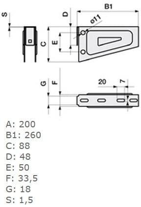 STEEL LINE CMS: PMU200S PUNTA MENSOLA UNICA B200, Mensola per sistema portacavi