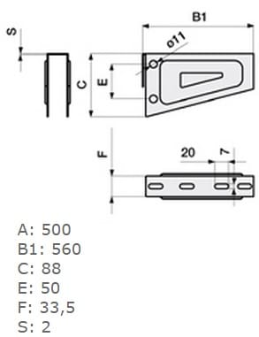 STEEL LINE CMS: PMU500S PUNTA MENSOLA UNICA B500, Mensola per sistema portacavi
