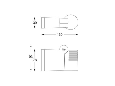 Proiettore compatto a LED ad alta emissione. Corpo e snodi in pressofusione di alluminio. Vano ottico alettato per garantire la massima dissipazione del calore. Orientabile di 180° sul piano verticale con bloccaggio meccanico del puntamento e di +/- 45 °sul piano orizzontale tramite staffa di fissaggio. LED ad alta emissione nel colore bianco caldo completo di ottica microsfaccettata in alluminio flood. Completo di staffa di fissaggio a parete. Driver elettronico integrato. Precablato con 1,5 m di cavo H07RN-F. Lampada: LED 8W 3000K. Colore: Ferrite.