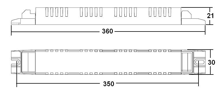 Alimentatore elettronico da incorporare. Utilizzabile per apparecchi di illuminazione in classe di protezione I e II (BTLT 280 classe I). Adatto al collegamento con apparecchi di emergenza in base alla EN 60598-2-22. Morsetti ad innesto rapido. Morsetti di entrata ed uscita contrapposte (sezione connettori: 0,5÷1,5 mm2). Fissaggio dell’alimentatore tramite asole per viti. Accensione con preriscaldo per una lunga durata della lampada. Protezioni in caso di disconnessione della lampada, lampada guasta o a fine vita. Protezione contro le extratensioni di rete. Classificazione EEI = A2.