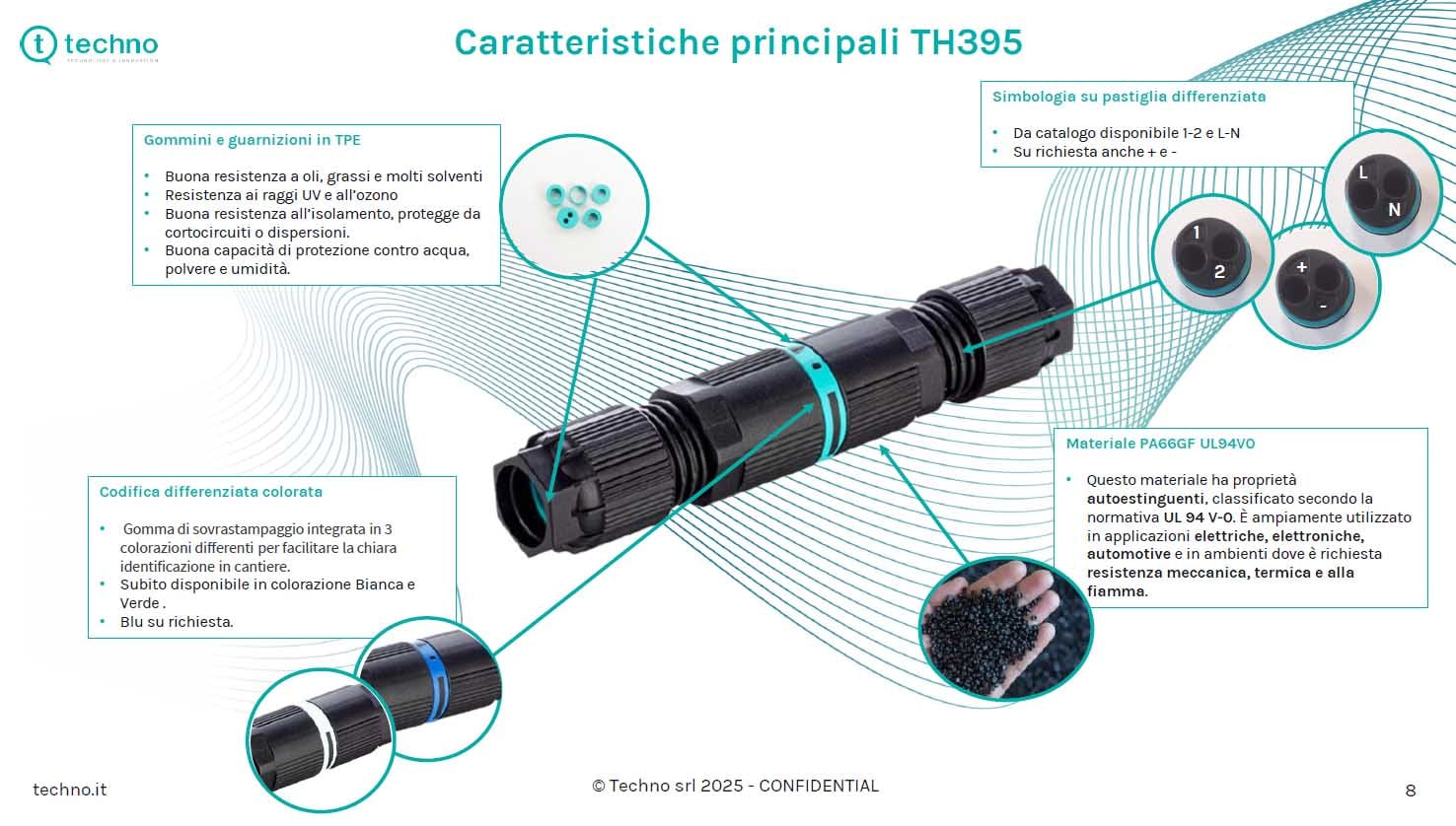 Il giunto elettrico miniaturizzato ad alte prestazioni per applicazioni compatte. IL Più COMPATTO DEL MERCATO. Quando lo spazio è un lusso, entra in gioco TH395: il nostro giunto elettrico più compatto. Progettato per gestire fino a 10 A / 500 Vin soli14 mm di diametro. Pensato per ambienti critici e sistemi miniaturizzati. • Diametro esterno cavo fino a 7,9 mm • Disponibile in due colorazioni differenti della plastica, nero o grigio • Sezione del conduttore: 2x1,5mm² • Versione lineare e pannello M16 • Personalizzazione colore della gomma di co-stampaggio per differenziare il tipo di connessione • Resistenza agli urti fino IK08 • Splitter di derivazione: Y e H • Utilizzabileall’internodi tubicorrugatidi Ø 20 mm