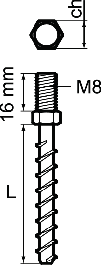 TEKNOMEGA SRL - TKGBFA1090 VITE AUTOFIL INOX 55MM X CALCES+MASC M8 - BFA1090