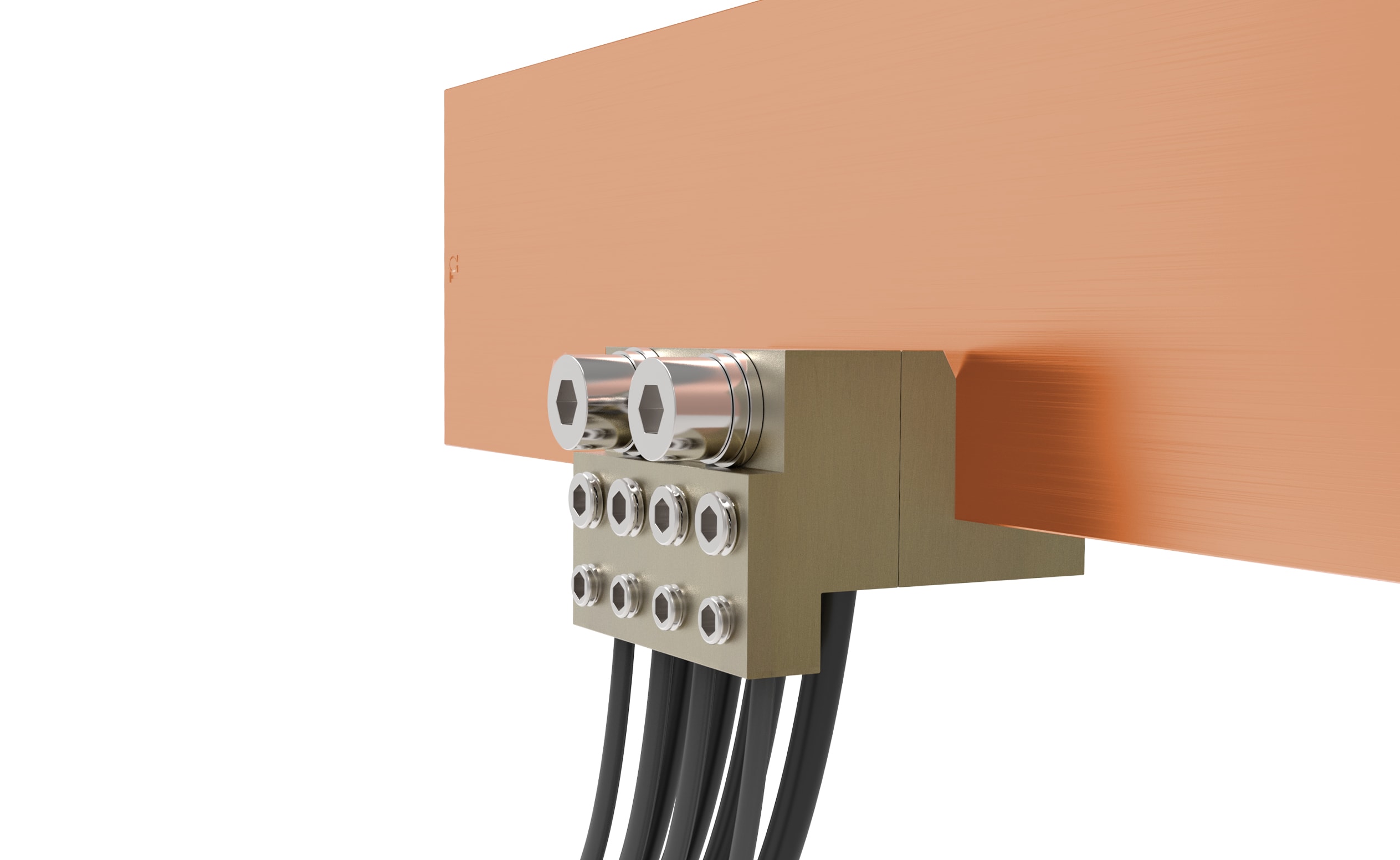 Morsetto per barra di rame, marca TEKNOMEGA SRL, modello TKGBOC1005 - RIPARTITORE OTTONE 8OUT CONNET.BARRA SP5